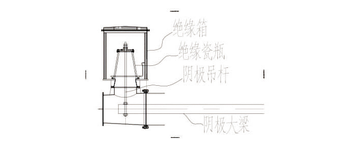 濕式電除塵器內(nèi)煙氣流速一般為2m/s~3m/s,采用上下大小梁固定的方式,用來保證陰極線在陽極管的正中心,受氣體流動的干擾引起的震動和移位盡量小。陰極線上端固定在上部陰極小梁上,陰極小梁連接在上部陰極大梁上。陰極線下端固定在下部陰極小梁上,陰極小梁連接在下部陰極大梁上。且每根極線的張拉強(qiáng)度在安裝時調(diào)整一致。陰極大梁穿過塔壁600mm直徑的絕緣箱管口,吊掛在絕緣箱內(nèi)部。在濕煙氣條件下,為防止煙氣中水在瓷瓶上凝結(jié)而導(dǎo)致爬電,保證陰極吊掛瓷瓶保持干燥,須設(shè)置熱風(fēng)吹掃系統(tǒng)。該系統(tǒng)由密封風(fēng)機(jī)、加熱器、閥門等組成。加熱器采用電加熱或蒸汽加熱兩種方式,通過實(shí)驗(yàn)熱風(fēng)溫度設(shè)定在80℃,在保證絕緣子內(nèi)壁干燥的同時,不對防腐玻璃鱗片產(chǎn)生影響。為了用小的風(fēng)量達(dá)到絕緣子干燥的目的,我們對絕緣子內(nèi)部結(jié)構(gòu)進(jìn)行了改進(jìn),提高絕緣性能。