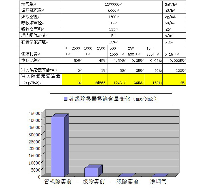 1)除霧效率高,霧滴含量的平均值小于75mg/Nm3,煙氣為標(biāo)準(zhǔn)干基煙氣。