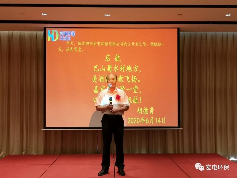 嘉賓代表胡德貴先生賦詩一首《啟航》相送,表達(dá)對四川宏電環(huán)保有限公司成立的祝賀祝福和期勉。