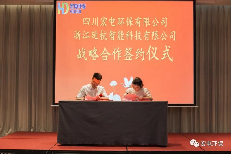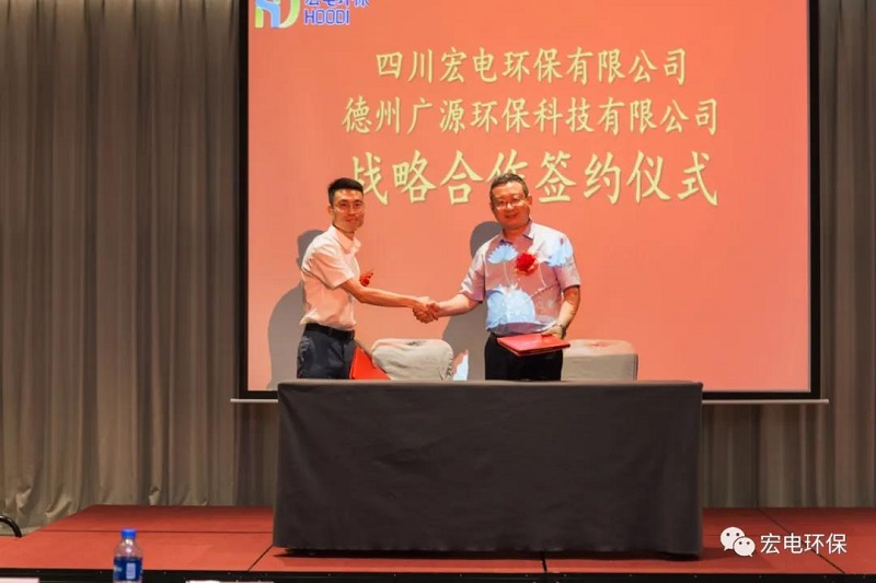 揭牌儀式后,四川宏電環(huán)保有限公司分別與德州廣源環(huán)??萍加邢薰?、江西正合環(huán)保集團(tuán)有限公司、浙江延杭智能科技有限公司進(jìn)行了戰(zhàn)略簽約,各方優(yōu)勢互補(bǔ),共同致力于四川環(huán)保市場的開拓發(fā)展。
