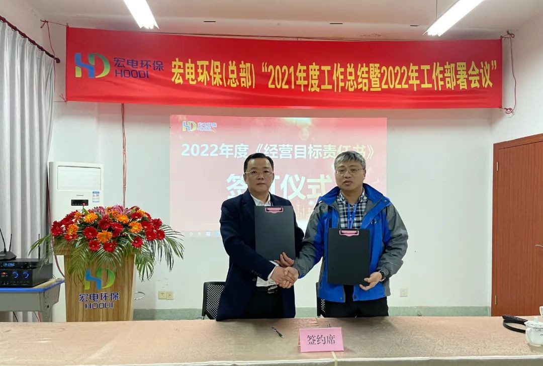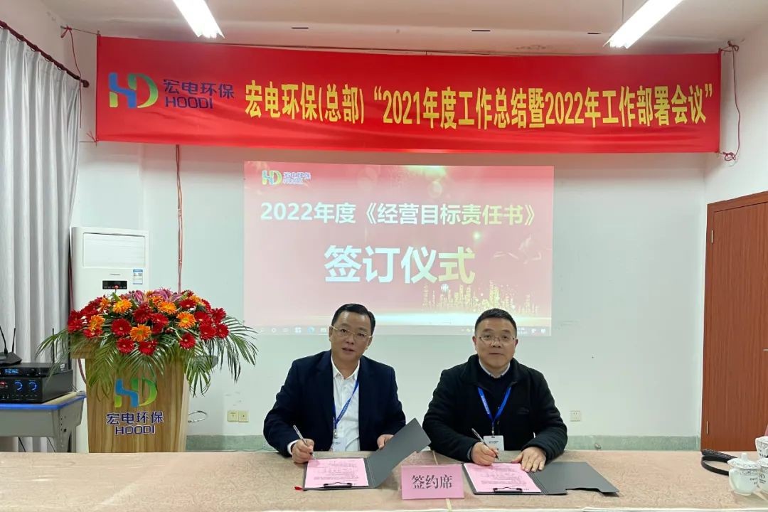 宏電環(huán)保鄒可興董事長(zhǎng)以《凝心聚力共奮進(jìn),同心逐夢(mèng)譜新篇》為主題,代表公司作了2021年度工作總結(jié)和2022年度工作部署,并分別同各事業(yè)板塊分管領(lǐng)導(dǎo)簽訂了2022經(jīng)營(yíng)目標(biāo)責(zé)任書(shū)。