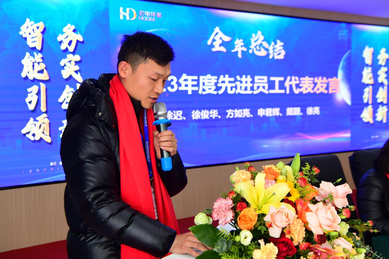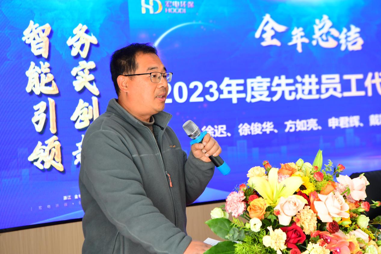 會議在熱烈而莊重的氛圍中拉開了序幕,執(zhí)行總裁俞李偉首先宣布了2023年度宏電環(huán)保集團評優(yōu)結(jié)果的名單。在過去的一年里,眾多杰出的同事們憑借出色的業(yè)績和不懈的努力,為公司創(chuàng)造了不可估量的價值。他們是我們團隊的精英,是我們不斷向前的旗幟和標(biāo)桿。我們深切期望這些優(yōu)秀員工能夠繼續(xù)發(fā)揮典范作用,引領(lǐng)并激勵更多的同仁為公司的繁榮貢獻自己的力量。同時,我們也邀請了這些先進員工代表登臺,與我們分享他們寶貴的工作經(jīng)驗和成長感悟。