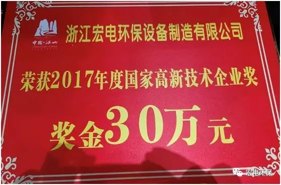 “宏電環(huán)保”旗下全資子公司浙江宏電環(huán)保設(shè)備制造有限公司,在2013年由江山市政府招商引資落戶到江山四都機電工業(yè)園區(qū),被列入江山市重點建設(shè)項目。此次榮獲江山市“2017年度高新技術(shù)企業(yè)獎”,這是對“宏電環(huán)?!倍嗄陙韴猿挚萍紕?chuàng)新企業(yè)發(fā)展的肯定,也是江山市政府對“宏電環(huán)?!标P(guān)愛和鼓勵。