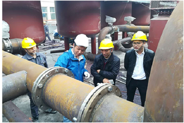 隨后,我司執(zhí)行總裁俞李偉陪同謝志群總工程師一行前往由我司總承包的浙江橫店熱電有限公司超低排放改造工程項目部現(xiàn)場實地考察。在項目施工現(xiàn)場進行了指導與交流,對我司的設計方案、項目管理與施工質(zhì)量給予了高度好評。