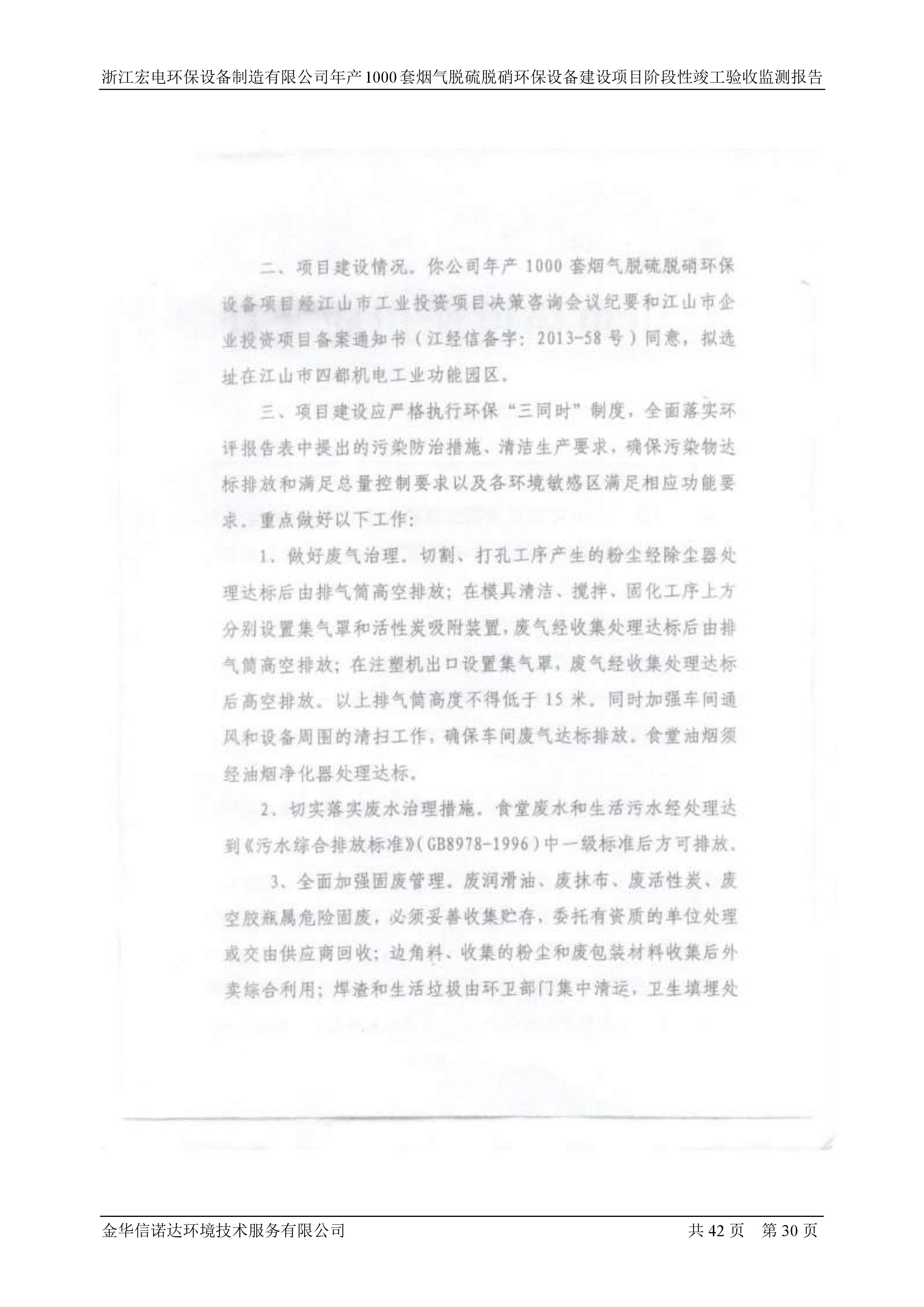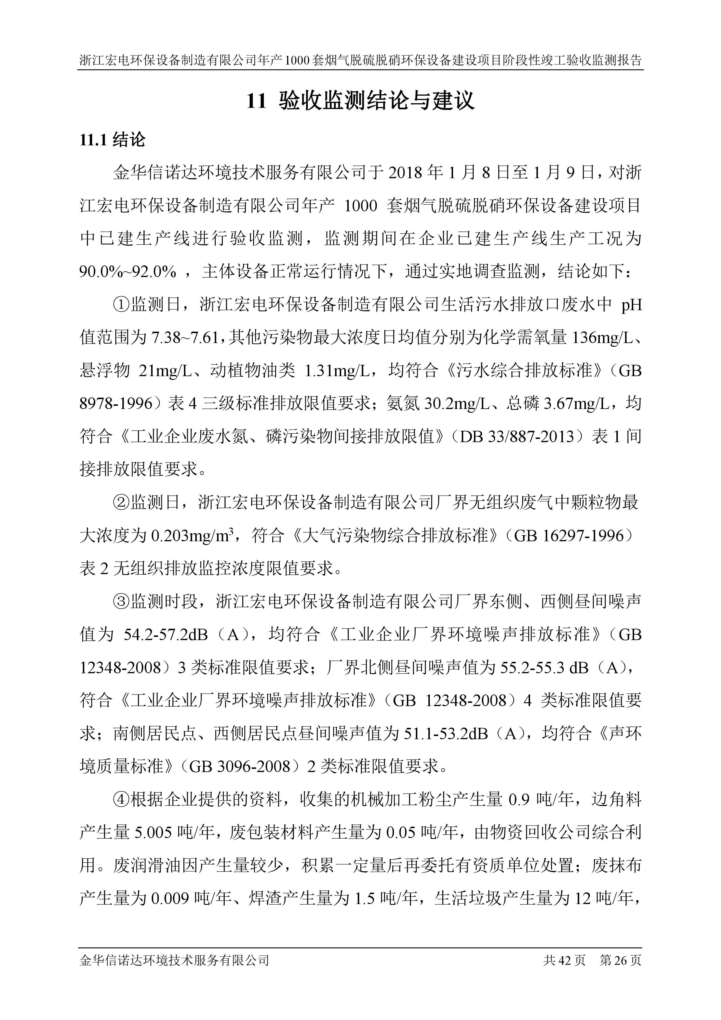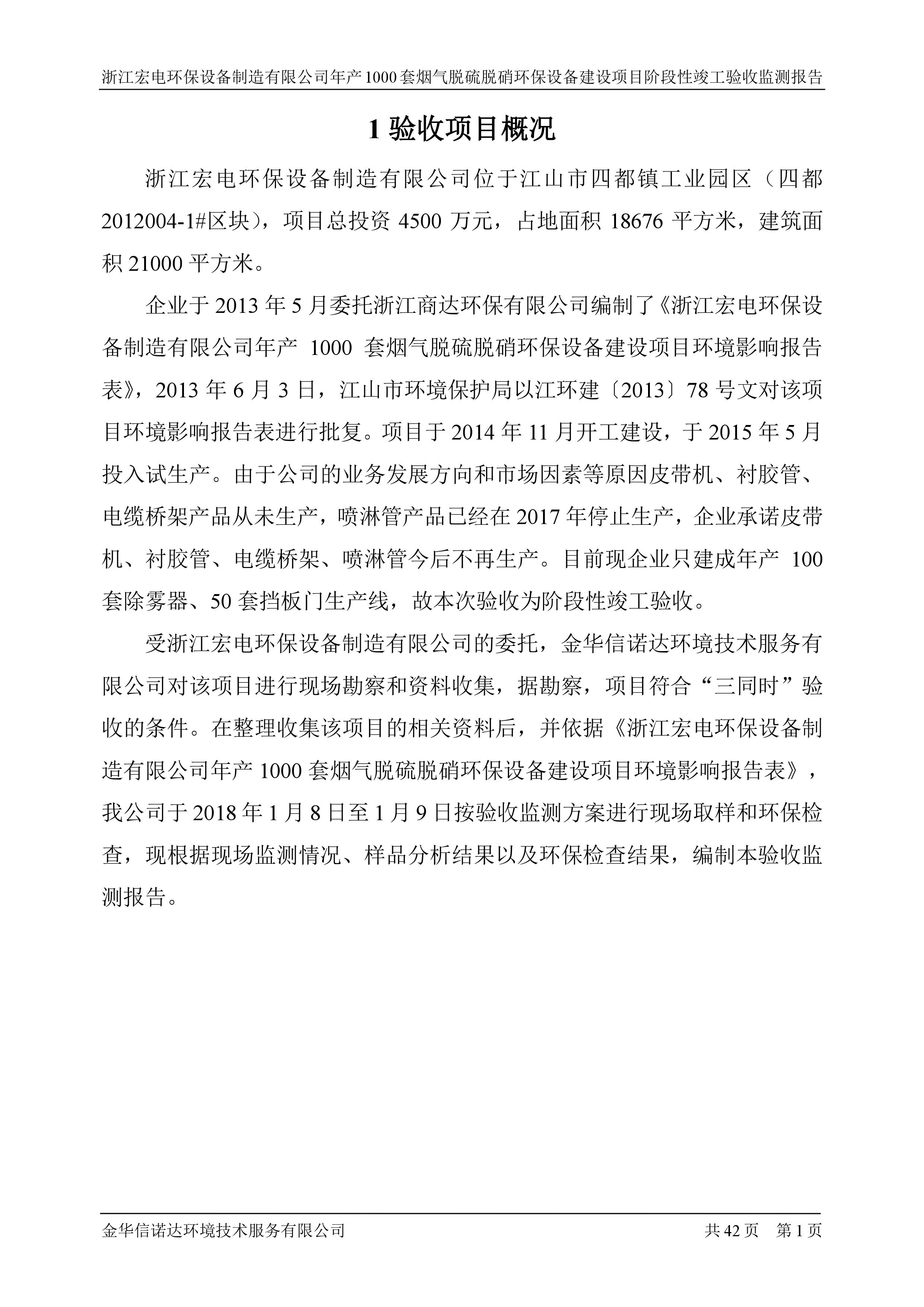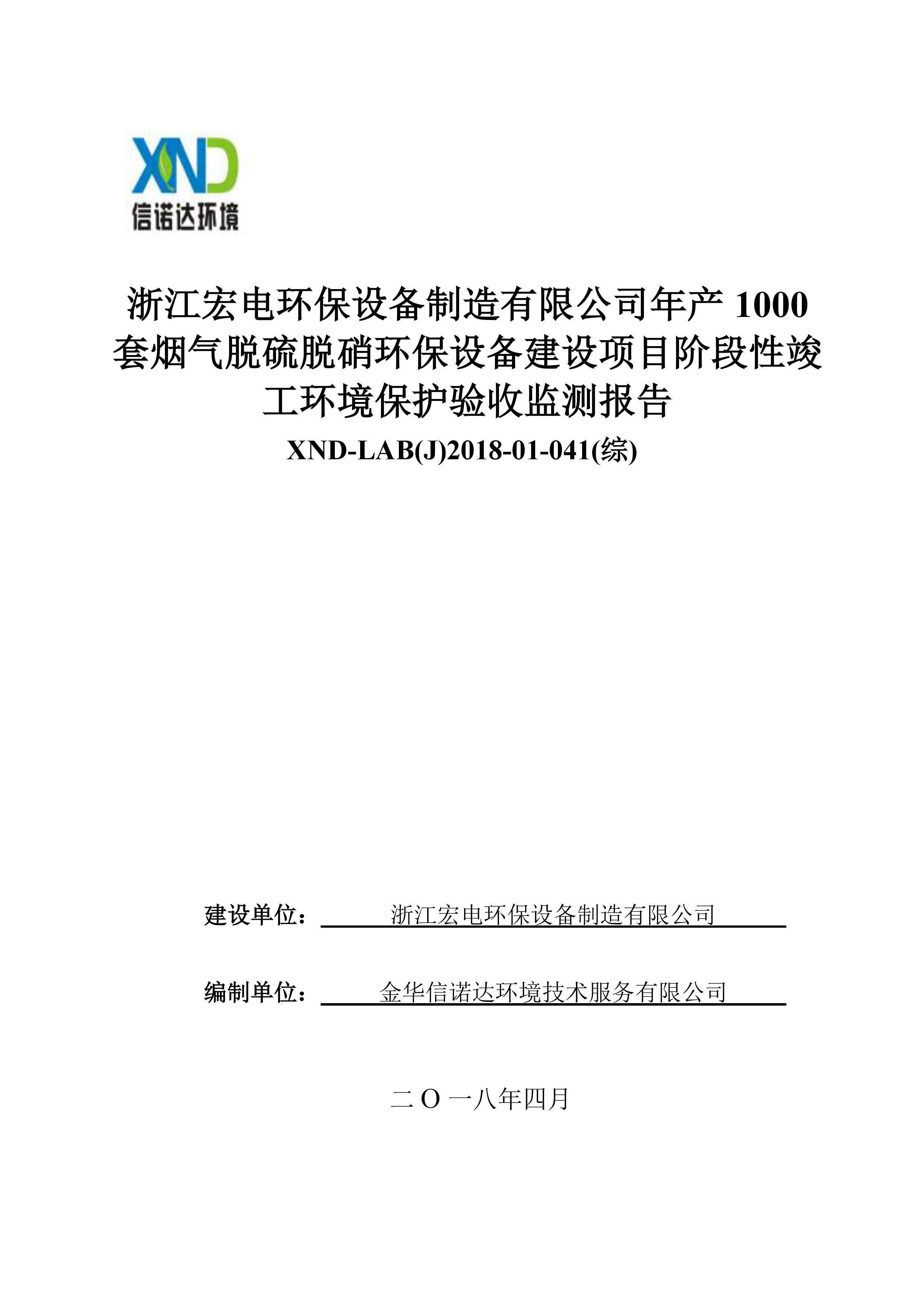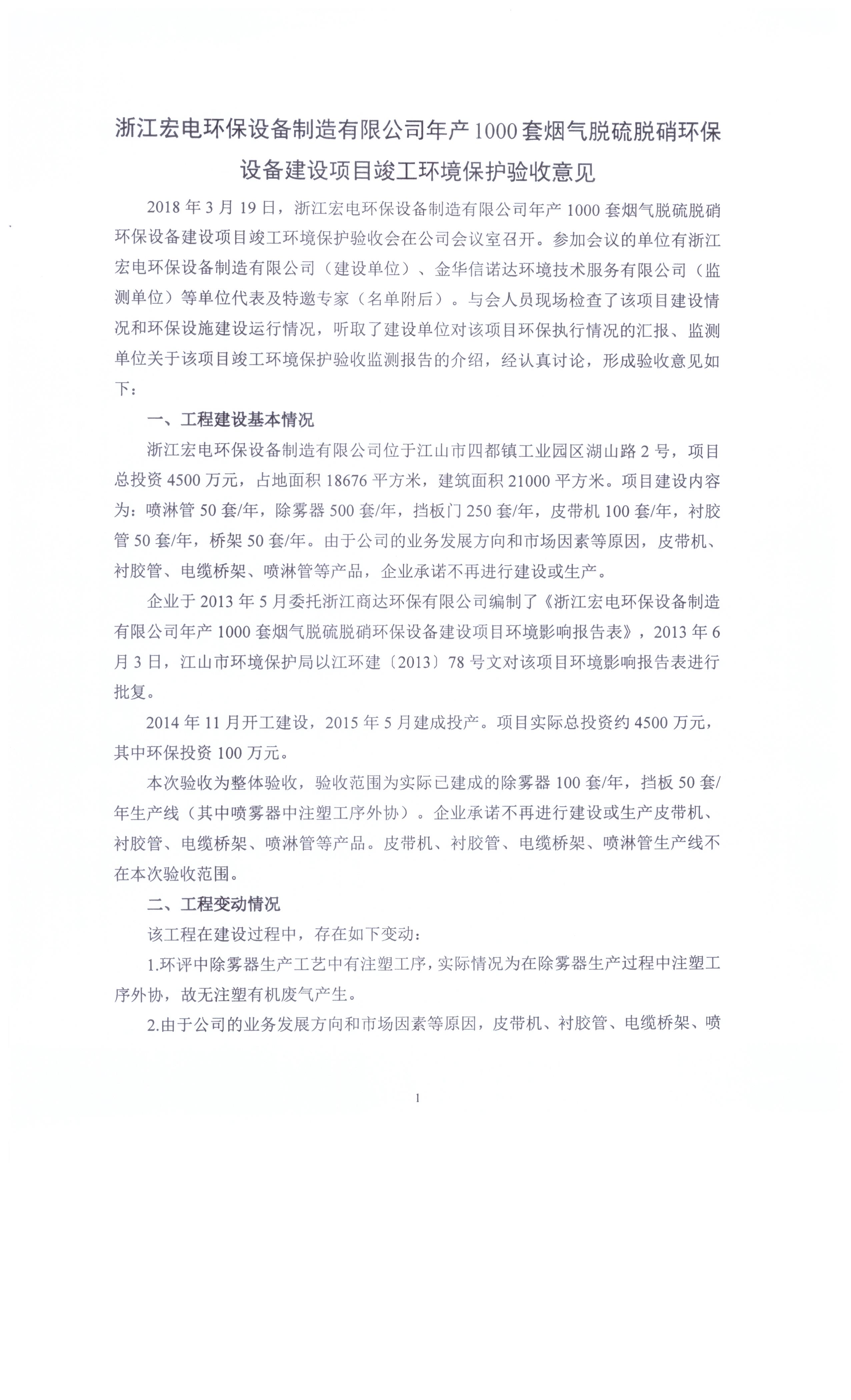 浙江宏電環(huán)保設(shè)備制造有限公司年產(chǎn)1000套煙氣脫硫脫硝環(huán)保設(shè)備建設(shè)項(xiàng)目竣工環(huán)境保護(hù)驗(yàn)收意見(jiàn)公示