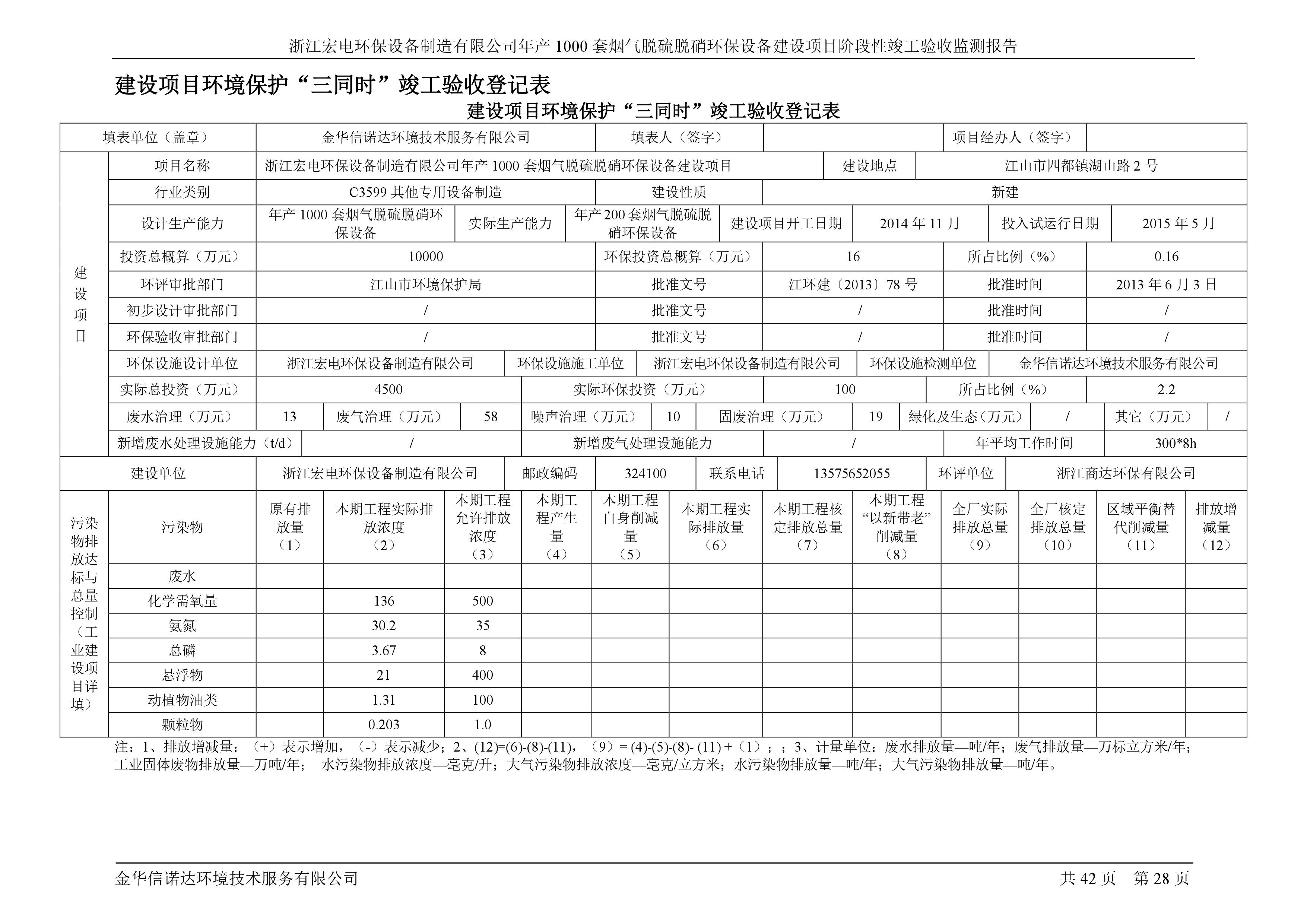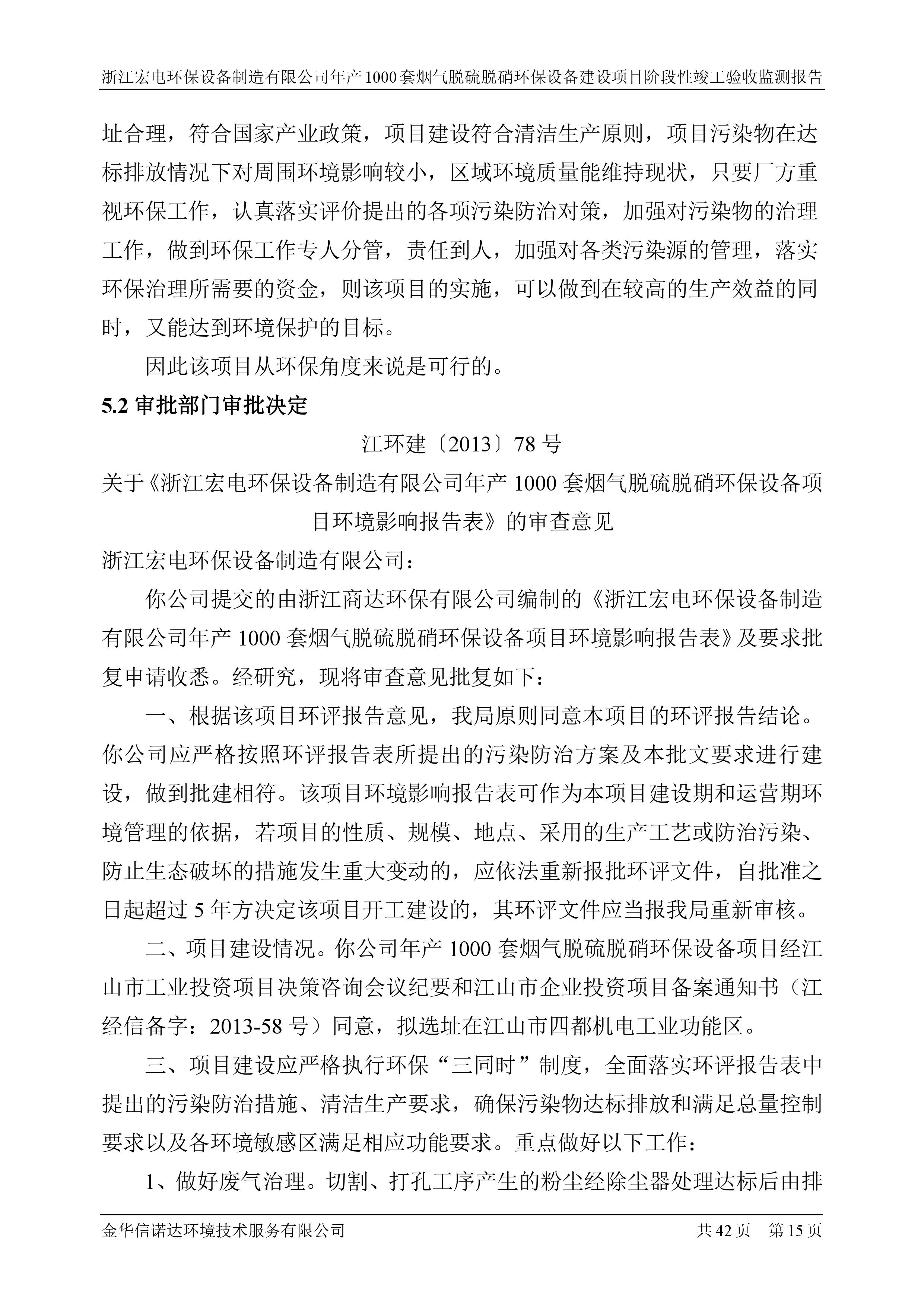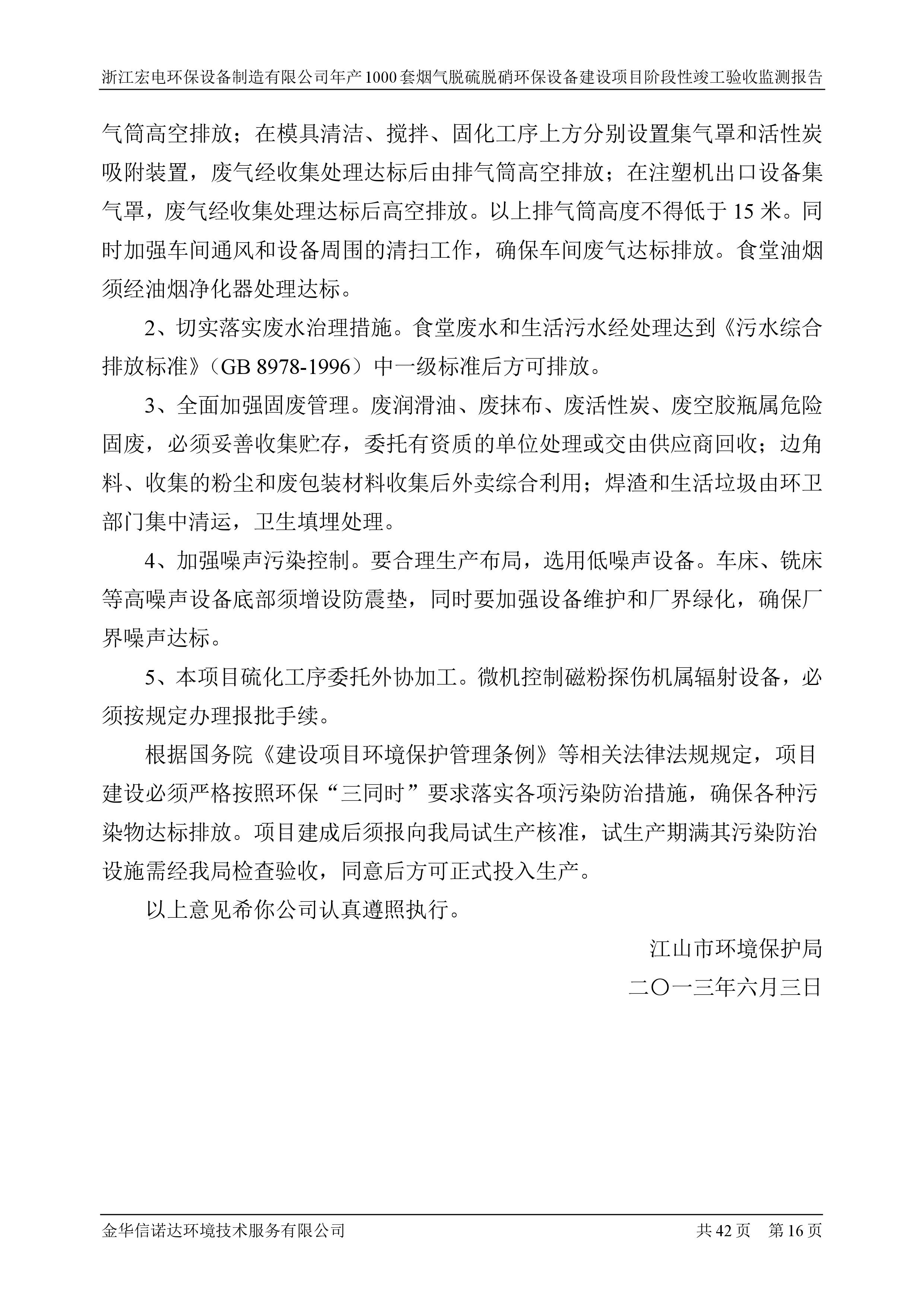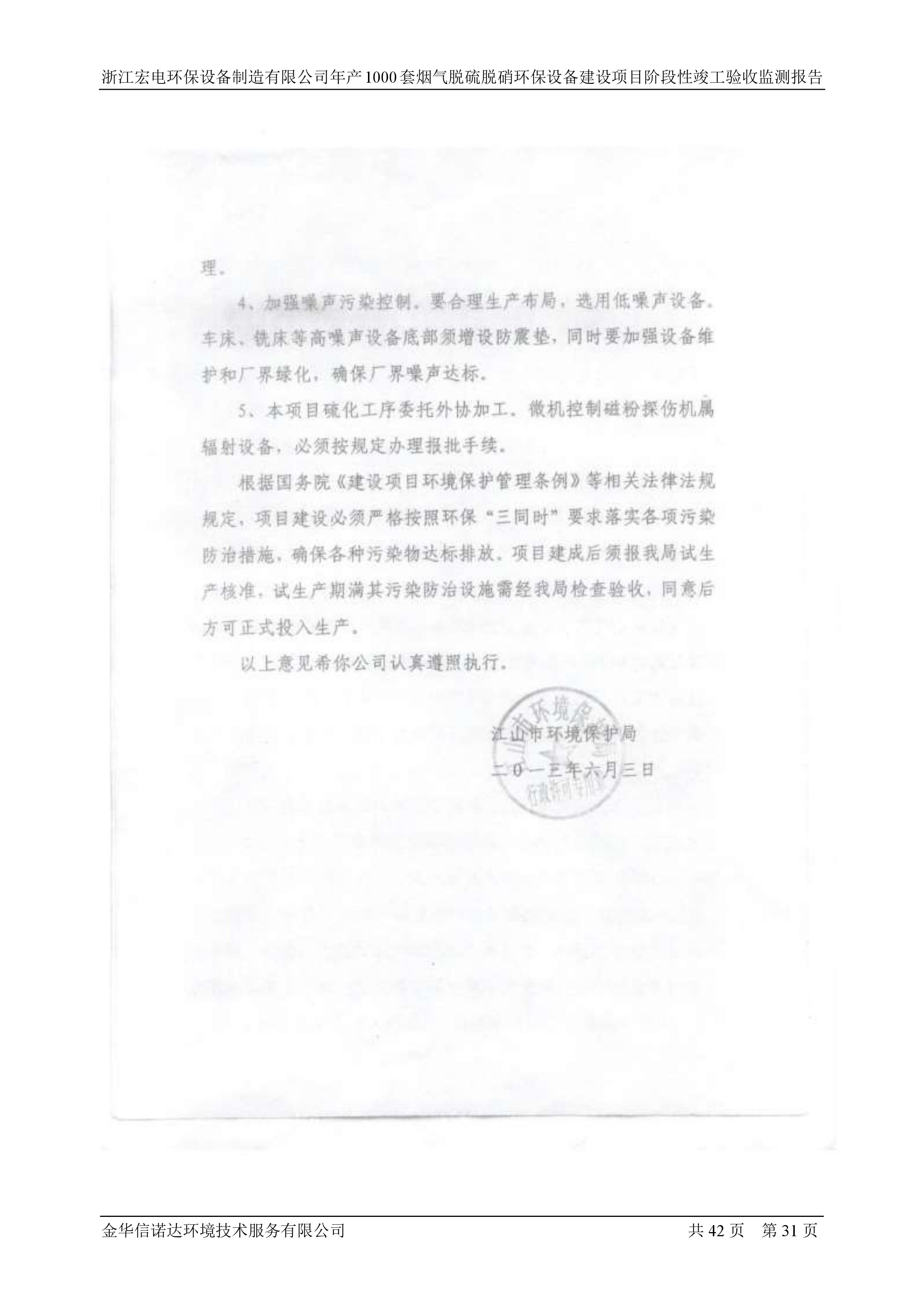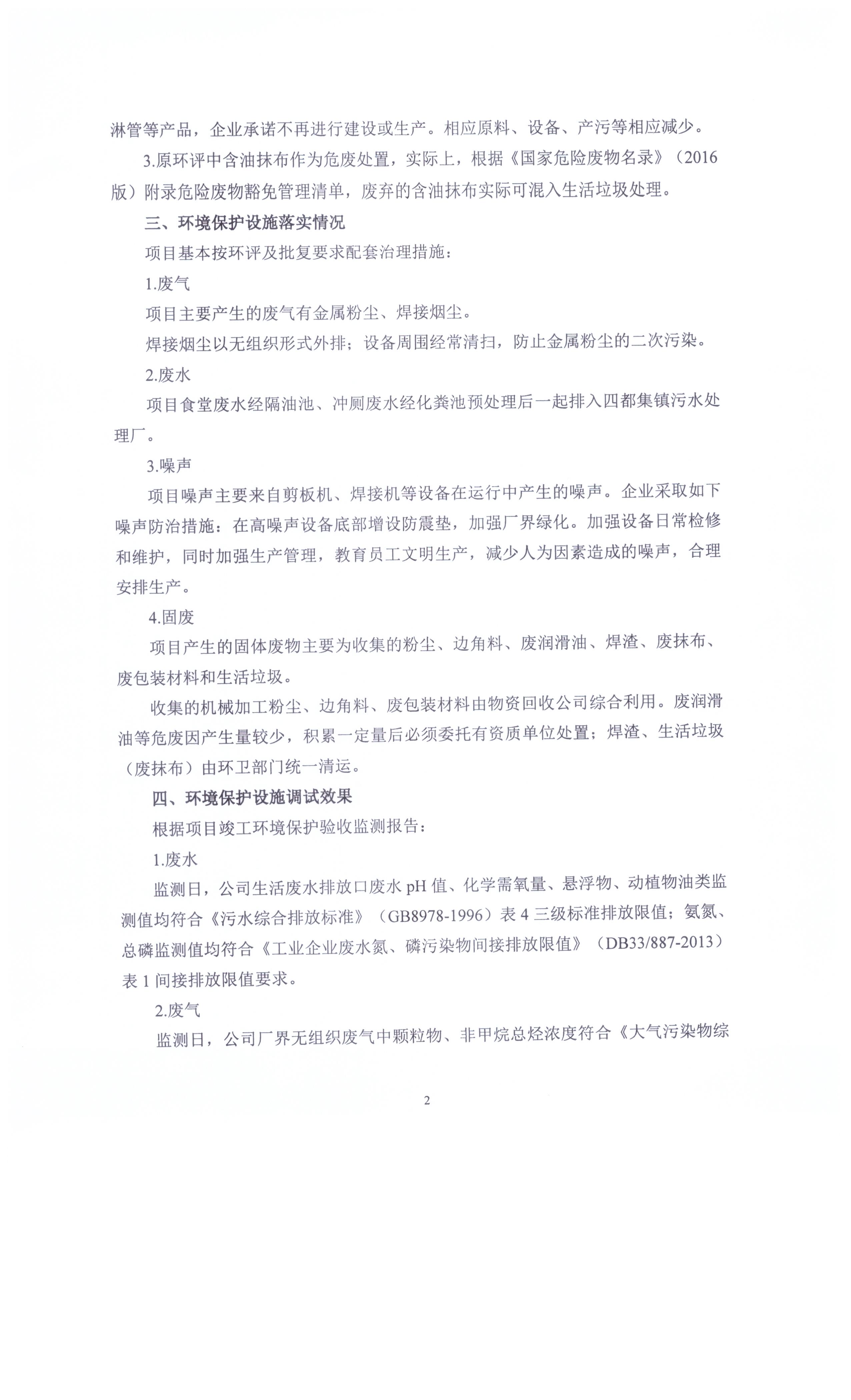 浙江宏電環(huán)保設(shè)備制造有限公司年產(chǎn)1000套煙氣脫硫脫硝環(huán)保設(shè)備建設(shè)項(xiàng)目竣工環(huán)境保護(hù)驗(yàn)收意見(jiàn)公示
