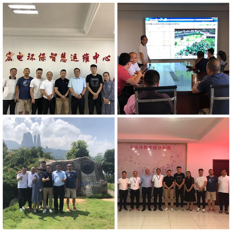 2018年7月10日,宏電環(huán)保董事長鄒可興親自陪同西安中建天智董事長馮訊、杭州延杭智能董事長劉江濤一行參觀宏電環(huán)保江山項(xiàng)目部智慧運(yùn)維中心和江山市江郎山景區(qū)。