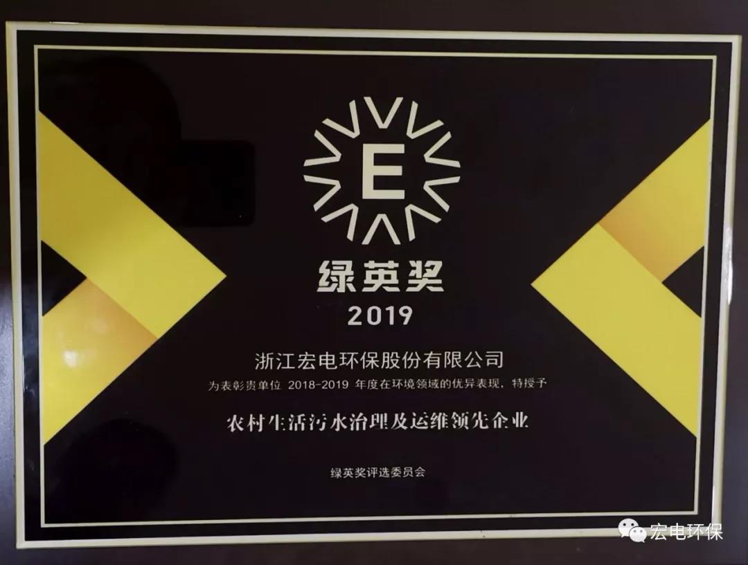 【宏電榮譽】喜訊!宏電環(huán)保榮獲2019“綠英獎”——農(nóng)村生活污水治理及運維領(lǐng)先企業(yè)