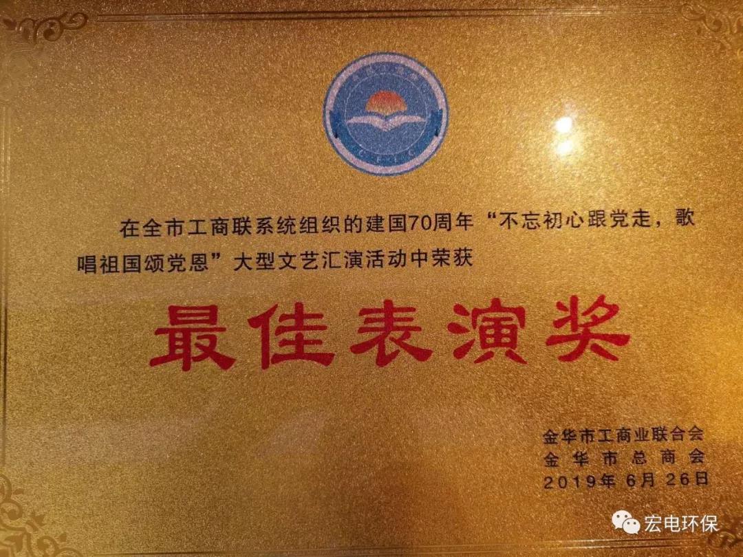 榮獲最佳表演獎!宏電環(huán)保合唱團在金華市工商聯(lián)系統(tǒng)建國70周年紅歌大匯演中高歌《共筑宏電夢》和《走向復興》