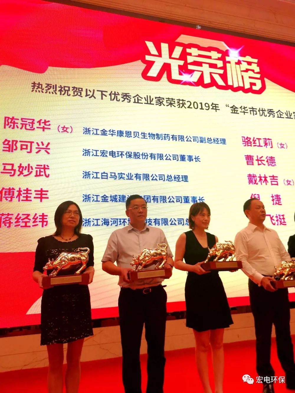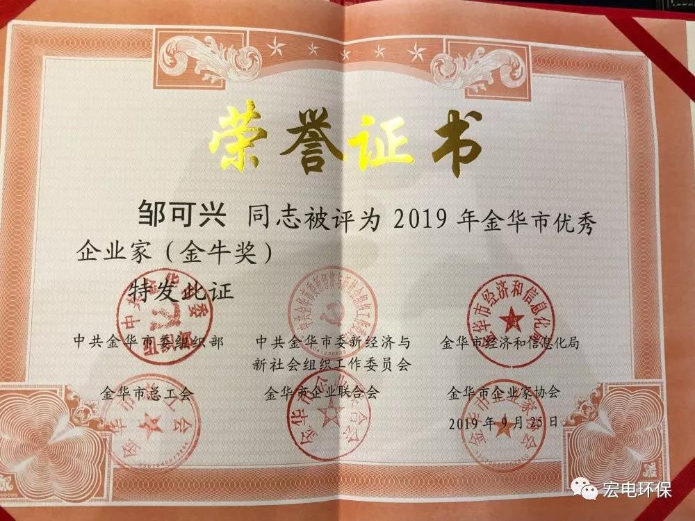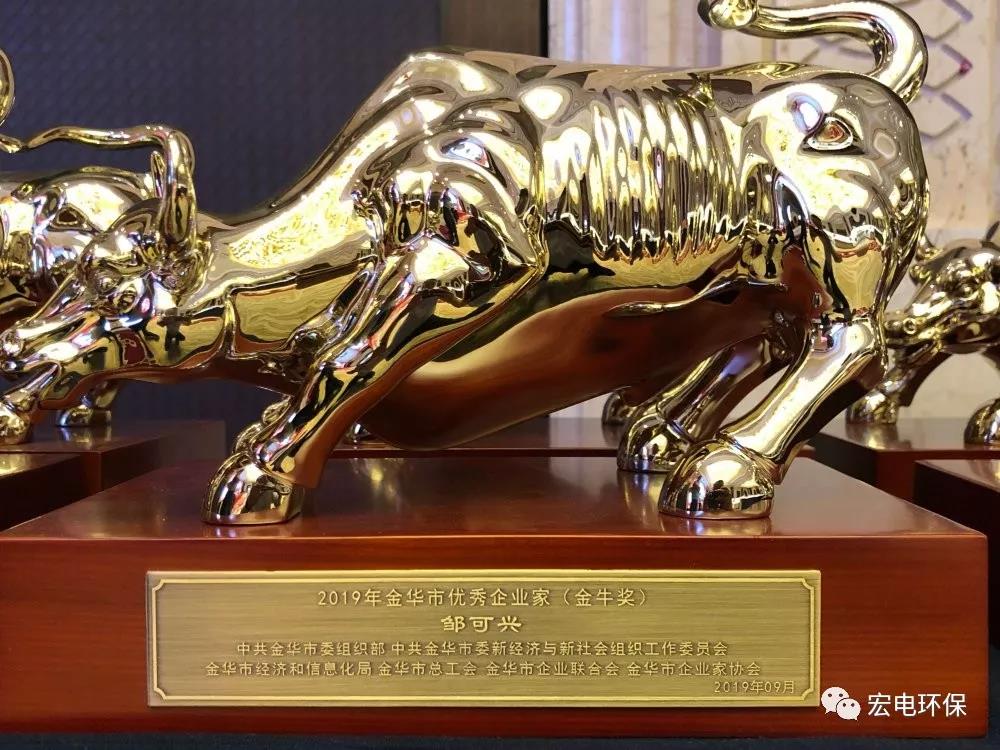 熱烈祝賀宏電環(huán)保鄒可興董事長榮獲“金華市優(yōu)秀企業(yè)家(金牛獎)”